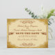 Vintage Theatre Production Gay Wedding Save The Date Cards. Stained vintage grunge paper background with cream label and vintage pointing hands images and heart shaped scrolls. Made to look like a western theatrical production poster or ticket. Easily customizable, simply add in your own wedding details. Each invite comes complete with a white envelope.