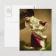 Vintage Geisha in a Springtime Rain Glass Slide Postcard