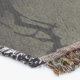 A quality printed throw has its advantages. This is a much finer weave throw than its loopier cousins, and though lighter, it is worth the investment for custom room accessorizing. The back is much prettier than the typical brown, and the fringe on the long sides very vivid, the selvage nicely done. Before photographing, I washed the throw in cold water, delicate, with a thicker woven throw the same size. On tumble dry low, this throw was dry in half the time as the other. This is a very practical quality if you use throws for furniture covers or to wrap up in frequently. The sleekness of the fabric makes it a great layer for accenting or protecting without the feeling of sitting on too much stuff. Perfect for napping or when you feel a light chill coming on. The color printing is beautiful and on this fabric, matched the design and color of my Photoshop image. This is an advantage for blending room fabrics and colors. The fringe on the short sides prints the colors from the design image and therefore varies from the side fringe. I streaked a white fractal line through the plaid pattern to give the illusion of weaving. This printed as crisp as an illusory thread, and put some white in the short side fringe, showing another advantage of print vs loomed- for artistic purposes, line lines, detail, and color integrity can be planned and preserved. My loomed throws have color limitations and more of a needlepoint texture. Print throws reproduce an exact image. The throw felt a little stiff straight out of the package, but this went away in the first delicate wash. Of course I searched the wash water for ink or bleeding and there was none.