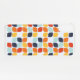 This mid-century modern pattern features orange, teal and teal geometric shapes.