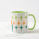 Vintage. Geometrics. Starbursts. If you love any of those words, this retro Vintage Geometric Starbursts Ringer Mug is for you. This mid century modern design features a cream background with rows of turquoise, lime green, orange, and teal starbursts. This mod design pairs beautifully with Strange Little Onion’s Retro Atomic Mobile Pattern and Retro Grid and Starburst products. Take back the kitschy with this unbelievably fun pattern. Go ahead; reach for the starbursts!