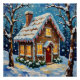 A magical vintage-style Christmas artwork featuring an illuminated gingerbread house surrounded by a snow-covered enchanted forest. Warm nostalgic tones give this piece a timeless postcard charm.