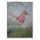 A vintage illustration by Honor C. Appleton from the 1922 children's book "The Bower Book of Simple Poems for Boys and Girls" depicting a young girl in a pink dress swinging on a tree swing. She's barefoot and her long pigtails are flying. In the background, other little girls are playing in a garden. Honor C. Appleton (1879-1951) was an English illustrator and artist who illustrated over 150 books in her career, beginning with children’s books and moving to literary classics. This card is blank inside for your own message.
