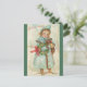 This postcard features a vintage illustration of a girl with a dog on Christmas day!