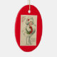 Adorable, vintage picture of a little girl all dress in a white, winter outfit with a big muff, is featured on this ceramic ornament. One side has a red background and the other side a green one. With message for "A Merry Christmas" and "May every Joy that's seasonable And every wish that's reasonable Be granted you this Christmas Tide." Making this a darling gift to give or use to decorate your own tree!