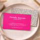 Vintage hollywood glamour block pattern in brown & white covers the back of this business card design. Update the hot pink card front with your name and business info. © 1201AM DESIGNS