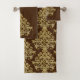 Add vintage elegance to the decor of your bathroom with this gold and chocolate brown damask towel set. This towel set would be a thoughtful housewarming, wedding, or another occasion gift