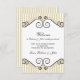 This wedding welcome gift card features a light gold striped background with solid black vintage irongate swirls on the top and bottom. The design gives the card a very elegant look. Customizable text allows you to add your own message to your out-of-town wedding guests.
