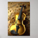 Vintage Gold Violin On Gold Musical Cords, Poster