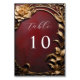 Elevate your wedding reception with these Vintage-style Wedding Table Numbers from the 'Theatrical Reverie Collection.' Each table number is adorned with captivating rustic backgrounds—blue, royal purple, green, rust brown, charcoal black, and theater red—featuring a rose flower and foliage in a 3D golden metallic effect. Embrace the vintage charm as these table numbers frame each centerpiece.