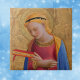 This vintage image has a beautiful Christian religious figure against a golden background. She is wearing a deep rose gown with a blue and yellow cape and is holding a book. See my store Art by MAR for matching products with this design.