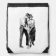 He is teaching her lovingly how to put a golf ball. A golf design of a couple playing in the 1920s or even 30s
