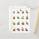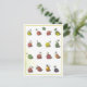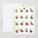 This postcard is a reproduction of a vintage botanical illustration showing various types of gooseberries.