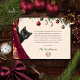 The back of the card features an endearing watercolor illustration of a black cat peeking out from behind a red velvet curtain. Use the provided Victorian style Christmas poem, or replace with your own heartfelt message, followed by an elegant script signature and classy monogram. Matching accessories and alternate versions available within our Crimson Velvet Christmas Party Suite.