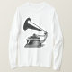 This t shirt design for music fans features a black and white illustration of a vintage gramophone or phonograph.