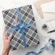 Vintage grayscale plaid diagonal pattern farmhouse wrapping paper