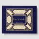Keeping in the 1920s Great Gatsby tradition this guest book features a bold geometric decorative pattern and lettering in gold on a navy background.