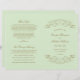 Decorative swirls and flourishes frame this elegant vintage inspired wedding ceremony program design. Pastel pistachio green background with antique gold design. Personalize the custom text for your bridal party, ceremony information, and thank you message. Note: these text weight paper programs arrive flat and require folding to assemble.