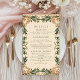 This timeless botanical design combines soft green foliage and ornate vintage scrollwork on a parchment-style background. The elegant greenery frame adds a refined yet natural feel, perfect for garden weddings, classic ceremonies, or nature-inspired events. Fully customizable for your special day.