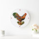 Vintage Green Tail Feathers Rooster Cockerel Large Clock