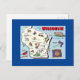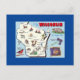 This is a beautifully designed vintage-style postcard with a map of Wisconsin along with the state bird, flower, flag, and animal.