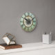 Antique look of weathered metal. Design features roman numerals, light blue border and metal filigree center flower. Note: Sculpted, engraved, embossed and dimensional effects, layered, aged or eroded appearance, textures and shadows achieved digitally. Actual product has a smooth surface.