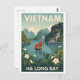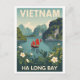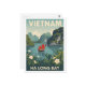 Capture the timeless beauty of Vietnam with this stunning vintage travel poster style postcard. Featuring the iconic karst pillars and emerald waters of Ha Long Bay, the design includes traditional sailing junks with vibrant red sails surrounded by lush foliage and delicate white flowers. Perfect for sending greetings from Vietnam, decorating a travel-themed space, or collecting retro-inspired art. A wonderful piece for lovers of Southeast Asia, retro aesthetics, and scenic landscapes.