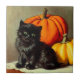 Ceramic Tile featuring a vintage Halloween black cat and pumpkins! This little ball of fur sits adorably next to two orange pumpkins. A great gift for Halloween parties and cat lovers!