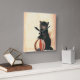 Vintage HALLOWEEN Black Cat Square Wall Clock