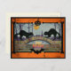 Celebrate Halloween with this beautifully designed vintage postcard featuring two black cats prowling on a spooky bridge under a full moon. Framed with classic Halloween elements like pumpkins, spider webs, and bats, this postcard captures the essence of old-school Halloween charm. Perfect for sending spooky greetings or for collectors of unique holiday-themed postcards.
