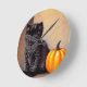 Clock featuring a Halloween black kitten illustration. An adorable black kitty sits next to an orange pumpkin. A spooky gift for cat lovers and Halloween enthusiasts!