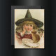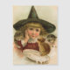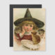 Magnetic card featuring a Vintage Halloween cutie in large pointed hat with kittens and some milk .Courtesy of The Graphics Fairy -edited by Alma Wad .