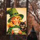 A vintage Halloween cutie in a large witch hat with a cute kitten This is great for anyone who loves vintage images of witches and cats. The No. 7 version comes with a green witch outfit. Ideal for little Irish witches.