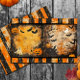 A double sided vintage grunge journal sheet with a two panel spread on one side, and a bold orange and black Halloween stripe pattern on the other.
