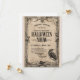 Featuring distressed parchment textures, ornate borders, and a mysterious raven illustration, this design sets the perfect tone for a spooky yet classy Halloween celebration.