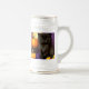 Beer Stein featuring a vintage Halloween kitten! A fluffy black kitty poses next to pumpkins against a purple background. A fun gift for Halloween parties and cat lovers!