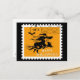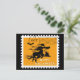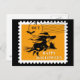 Vintage style halloween postage on a postcard with a flying witch