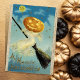 Vintage Halloween Pumpkin Witch On a Broom Flat Card.