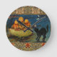 Vintage Halloween Pumpkins Black Cat Round Clock