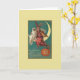 Victorian / Vintage Halloween greeting card. Witch with her white owl sitting on a crescent moon! When The Owl And Witch Together Are Seen, There's Mischief Brewing On Hallowe'en!