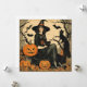 Vintage Halloween Witch, Pumpkin, Black Cat, Bats Holiday Card