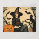 Vintage Halloween Witch, Pumpkin, Black Cat, Bats Holiday Postcard