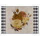 Pretty vintage yellow rose botanicals on distressed cream background with black and white Harlequin diamond pattern border adds a lovely garden element to any home decor