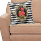 Pretty vintage red begonia botanical illustration with golden bee, on fancy scrolled black and gold frame surrounded with black and white Harlequin diamond pattern border create a lovely garden theme design.
