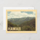 A stunning vintage-style postcard featuring the lush, dramatic, and iconic mountain landscapes of Hawaii. The image captures the deep, verdant valleys and ridges under a soft, cloudy sky. The classic, faded colors and retro filter give this card an authentic vintage travel poster feel, evoking the islands' rich natural beauty. This card is perfect for sending a thoughtful message, commemorating an island vacation, or framing as a small piece of tropical art. A great design for anyone who loves nature, the Pacific Islands, or the unique landscapes of the Aloha State.
