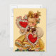 Adorable vintage girl is holding two red Valentine's Day hearts. Text says Valentine Greeting, but can be changes to say what you wish to customize it to. Many gifts and apparel available with this design in my store.