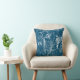 Stylish throw pillow with vintage French constellation chart, known as ' Hercules and Corona Borealis' - white star chart overlay on blue background