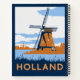 This design features a posterized illustration of the Dutch landscape including two windmills.