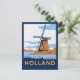 This design features a posterized illustration of the Dutch landscape including two windmills.