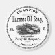 Vintage Trends' vintage farm house ephemera soap magnet design features an actual 1800s harness oil soap logo. It includes vintage typography and a black and white horse illustration. #Vintage #Magnet #VintageAccents | Graphic digitally enhanced by Vintage Trends.